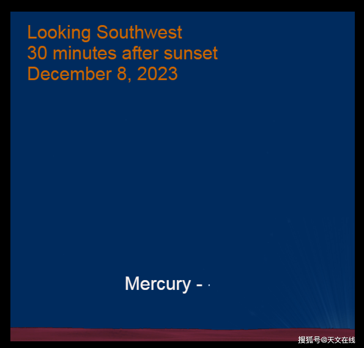 图表说明-2023年12月8日:傍晚天还亮着的时候,水星出现在了西南部的天空。