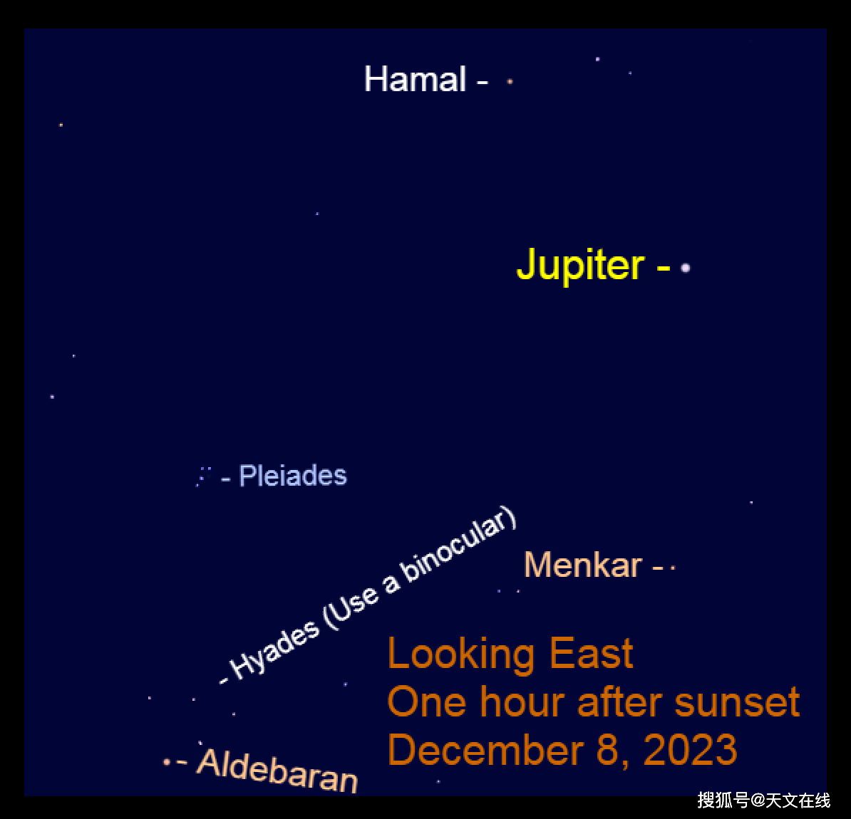 十二月八日:白羊座的眼睛聚焦于金星,土木整晚可见