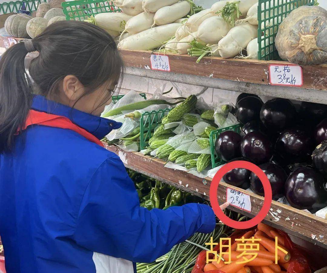 “焦糖”被错写成了“蕉糖”,黄豆芽的“芽”被错写成了牙齿的“牙”,“会稽山”的“稽”字笔画写错了……学生们化身小小啄木鸟,走进水果园、菜摊、洗衣店等商铺,细心观察,针对错别字、不规范的简化字,提醒了相关店主。