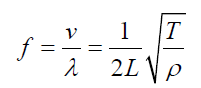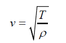 而且,根据物理学公式,波在弦中传播速度与拉力T和线密度ρ有关,关系是: