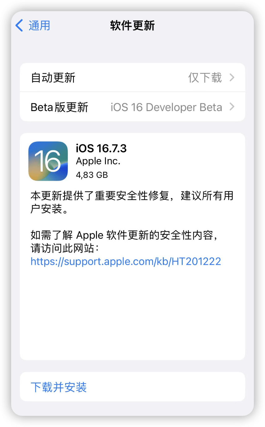 根据更新日志,iOS 16.7.3 RC 版中提供了重要的安全性修复,建议所有用户安装。