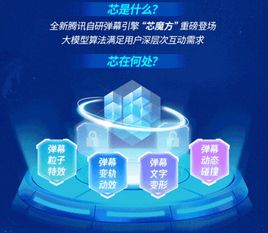 据腾讯视频官方介绍,这是腾讯自研弹幕引擎“芯魔方”,图像算法 AI 模型保证弹幕效果和画面内容的高契合度,可以达到模拟场景的效果呈现。