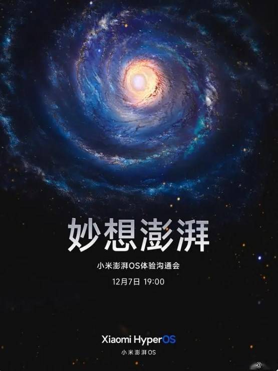 驱动中国2023年12月6日消息 小米公司宣布,将于12月7日晚上7点将直播举行小米澎湃OS体验沟通会。