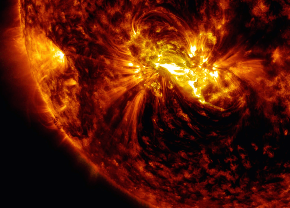 当太阳爆发时,会发生日冕物质抛射,一次抛射能将数以亿吨计的太阳物质以数百米到数千米每秒的高速抛离太阳表面。