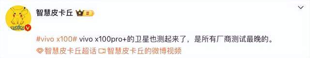 不过,友商肯定不会坐以待毙,早就在内部进行了研发工作,最新消息显示,vivo即将发布的X100 Pro+超大杯机型就已经开始内部测试,值得一提的上,该博主还提到一个关键信息:“是所有厂商测试最晚的”。这也预示着除了华为和vivo,其他国产厂商也已经在自家的机型中测试了卫星通信功能,只是受限于产品发布周期暂时还未公开发布。