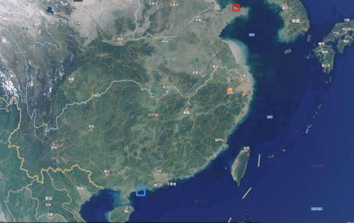 红框内为山东烟台,篮筐内为广东阳江。屠晨昕 制图