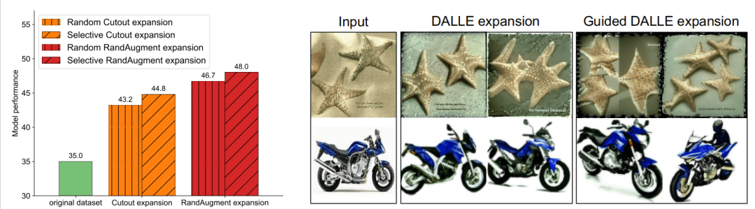 然而,我们无法直接建模人类作为先验模型来进行数据想象。但幸运地是,近期的生成模型(如 Stable Diffusion,DALL-E2)已经展现了强大的拟合大规模数据集分布的能力,能够生成内容丰富且逼真的图片。这启发了该论文使用预训练的生成模型作为先验模型,利用它们强大的先验知识来对小数据集进行高效地数据联想和扩增。