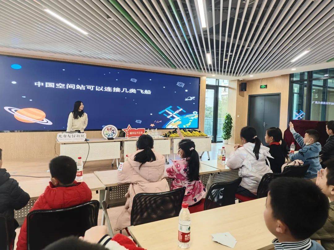 “鸭梨课堂”带来了一段关于中国天宫空间站的科普小动画,讲述中国空间站建设所取得的丰功伟绩。观看结束后,孩子们分享了感想体会。在“课堂速记抢分赛”环节,孩子们根据观看动画时速记的知识点踊跃举手,抢答关于中国空间站的问题,在提高课堂注意力的同时,还培养了孩子们对航天科技的浓厚兴趣。孩子们用自己的语言将学到的知识进行复述,进一步锻炼提升了自身综合能力。