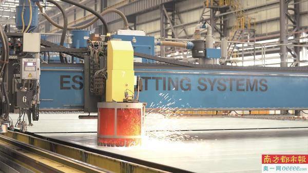 2022年投入使用的“薄板打印机车间”,是广船国际智能化程度最高的地方。在这里,厚重的钢板可以变成一个10mm-25mm区间的船舶分段。据介绍,科技加工的奥秘,全都隐藏在4道全智能化的加工工序中。