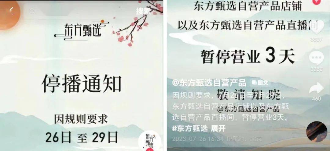 7月,“东方甄选自营产品”抖音直播间停播了三天。