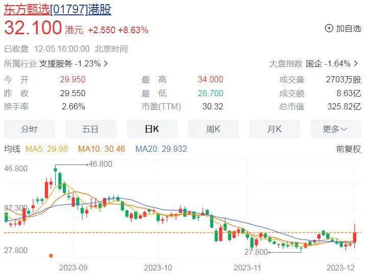 资本市场乐见其成,当天东方甄选一度大涨超13%,收盘仍上涨8.63%,市值325.82亿港元,再度站上300亿关口。