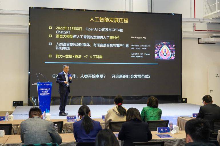 在论坛现场,多位专家学者和企业高管分享了目前AI大模型的运用实例以及AI大模型在企业、经济发展中的作用。上海稀宇科技有限公司副总裁刘华介绍了MiniMax多模态开放平台探索和实践。据悉,该平台已经在教育、办公、互动娱乐等十余个行业上线应用。上海人工智能实验室领军青年科学家陈恺介绍了“书生”通用大模型体系的应用和发展。AI大模型已经开始为各行各业带来切实的支撑与助力,加速企业“增效”升级。