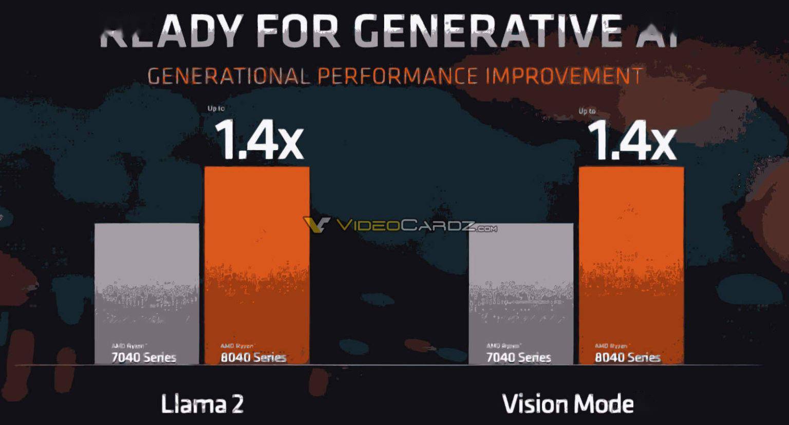 据 AMD 数据,XDNA NPU 加持下,AMD 锐龙 8040 系列移动处理器在生成式 AI 方面的性能提升可达 40%。