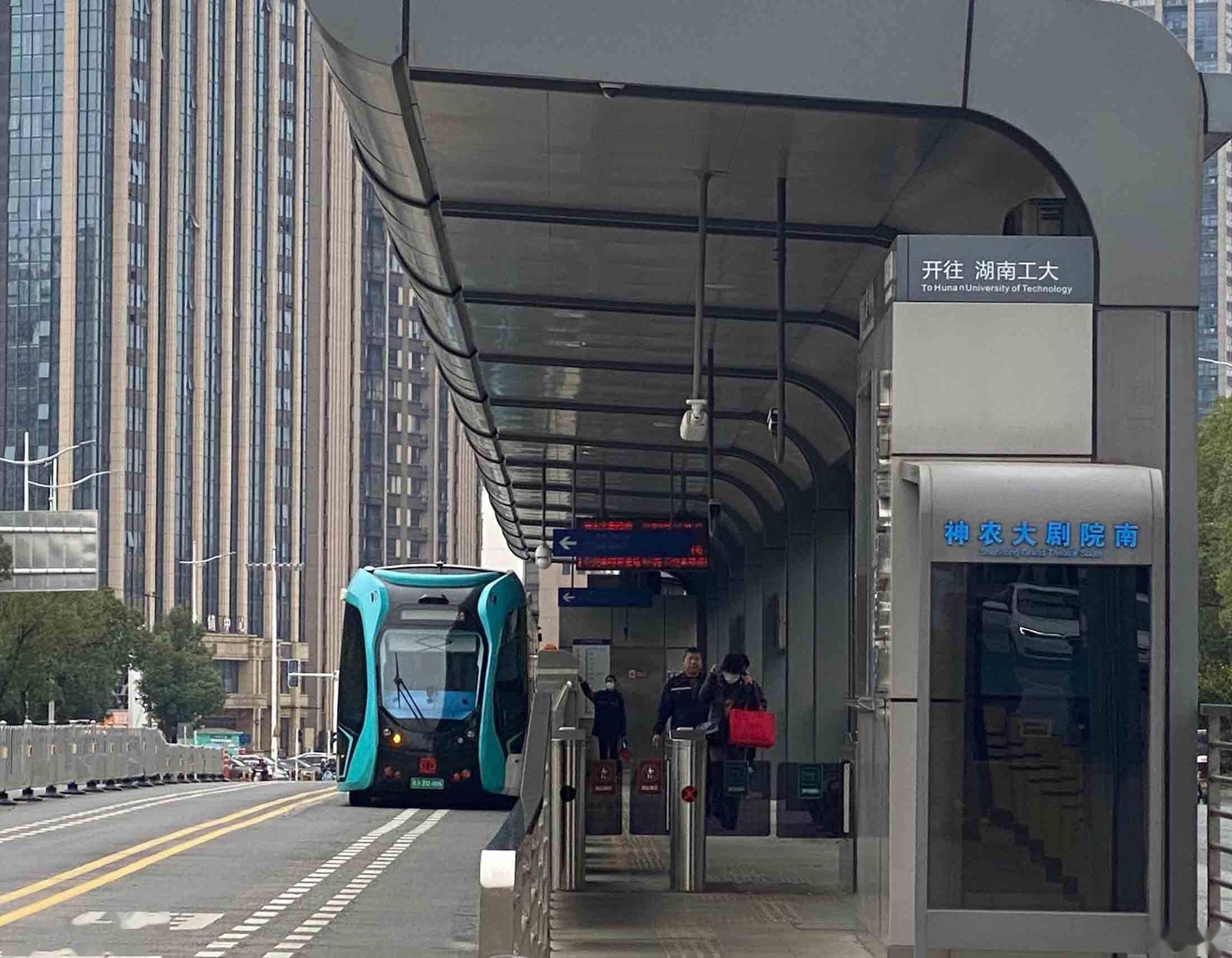 株洲市停靠在站台边的智轨电车。 人民网向宇摄