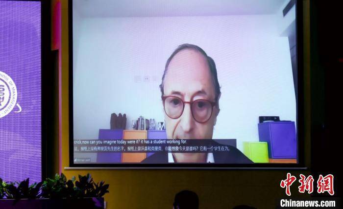 迈克尔·莱维特(Michael Levitt)教授在线发表演讲。(复旦大学管理学院供图)