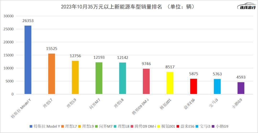 2023年10月35万元以上新能源车型销量排名,数据来源于懂车帝,连线出行制图