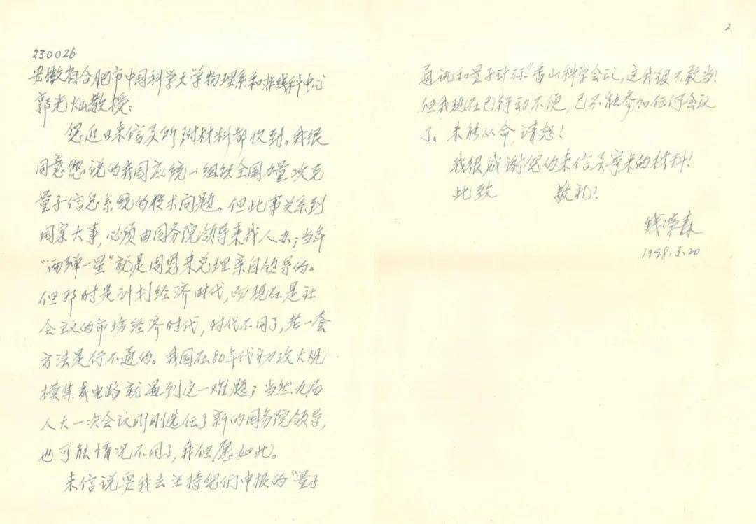没想到,钱学森不仅读了来信,还很快给郭光灿回复:“我很同意您说的我国应统一组织全国力量攻克量子信息系统的技术问题……但我现在已行动不便,已不能参加任何会议了。”