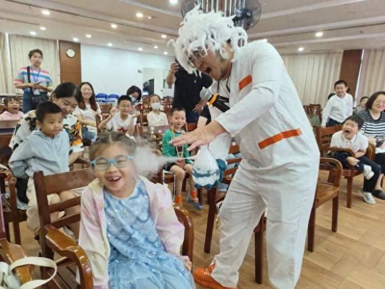 徐汇区长桥街道近日在长桥街道社区文化活动中心开展了一场生动有趣的趣味科学秀,特别邀请了两位表演者为孩子们带来了趣味与教育科普兼具的10个节目。他们用充满创意的剧情,极具惊喜又夸张幽默的表演方式,点燃了小朋友们对于科学学习的热情。
