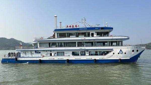 据了解,“三峡氢舟1”号为钢铝复合结构,总长49.9米、型宽10.4米、型深3.2米,乘客定额80人,主要采用氢燃料电池动力系统,氢燃料电池额定输出功率500千瓦,最高航速28公里/小时,巡航航速20公里/小时,续航里程可达200公里,交付后用于三峡库区及三峡-葛洲坝两坝间交通、巡查、应急等工作。
