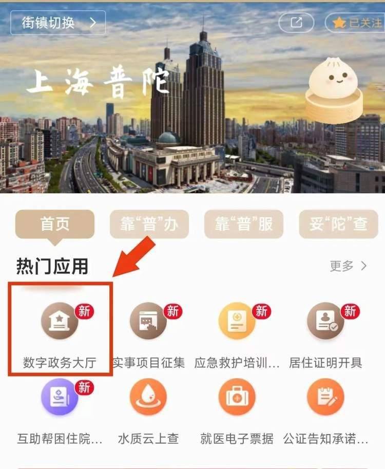 让我们来看看如何使用“随申办普陀旗舰店”的“数字政务大厅”新功能,具体操作步骤如下: