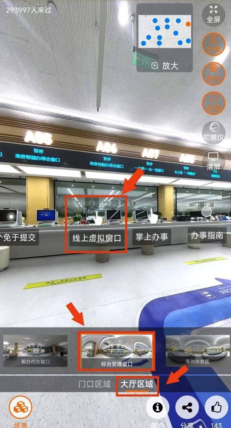 2.点选“大厅区域-综合受理窗口-线上虚拟窗口”,就可以点击进入“虚拟综合窗口”体验线上服务啦。
