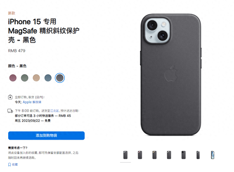 除了数据线以外,Airpods Pro2也推出了新的USB-C接口版本,价格还是1899元,我们的建议是等一下某多多,价格一定会打下来的。除了耳机以外,还有iPhone15系列的保护壳,硅胶和硬塑料的卖399元,精织斜纹的卖479元,这也算是苹果的老传统了,笔者确实是没买过这么贵的官方壳了,买过的小伙伴可以在评论区告诉一下,是什么感觉。