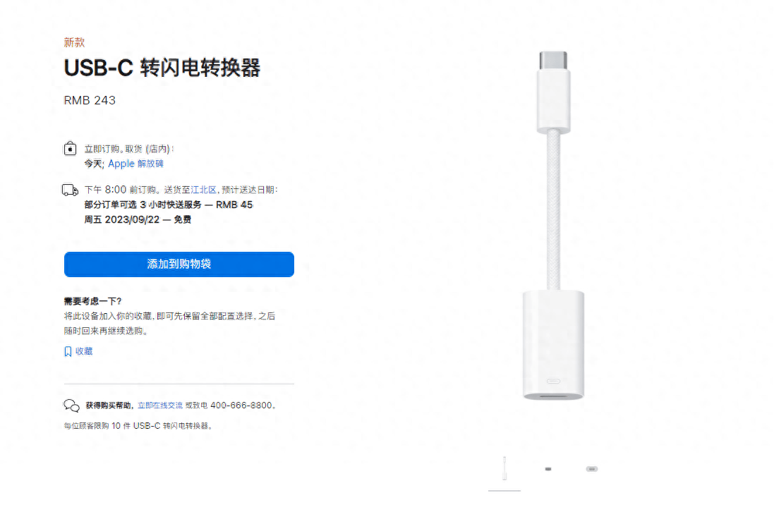 最离谱的还有这个USB-C转Lightning转换器,同样采用的是编织材质,根据官方的说法,它可以将Lightning配件转换一下链接你的iPhone或者iPad,还包括了CarPlay功能。只是它的价格可一点都不便宜,需要243元,或许库克觉得目前用户手里的Lighting数据线还可以发光发热一下,大家都来买这个转换器吧!