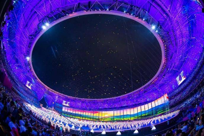 其中,除了亚运AGIS专网、广播电视转播网,5G+子弹时间等多类智能应用,中国移动还为亚运会打造的高容量弹性自呼吸5.5G网络,在保障现场高密度网络需求的同时,还为亚运史上首个数字点火仪式、裸眼3D的江南盛景呈现、灿烂的电子烟花秀提供了坚实技术支撑。
