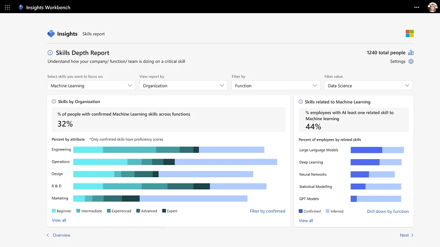 🤖 利用微软图谱和LinkedIn技能图谱的综合力量,技能功能将智能地推断员工的技能概况。