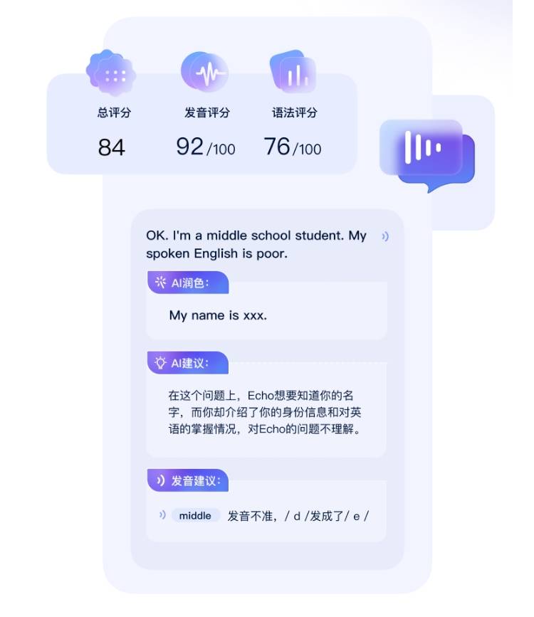 📚 Hi Echo是虚拟人口语私教,提供个性化口语练习,支持多轮对话和评分。