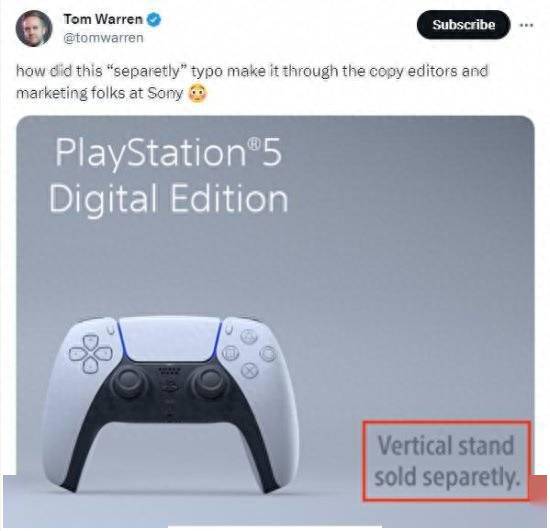 离大谱!索尼新版PS5官宣图出现单词拼写错误