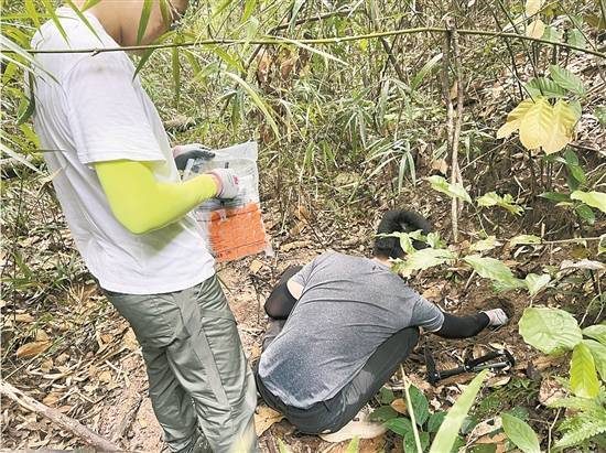 李文均教授团队在丹霞山野外采集微生物 |