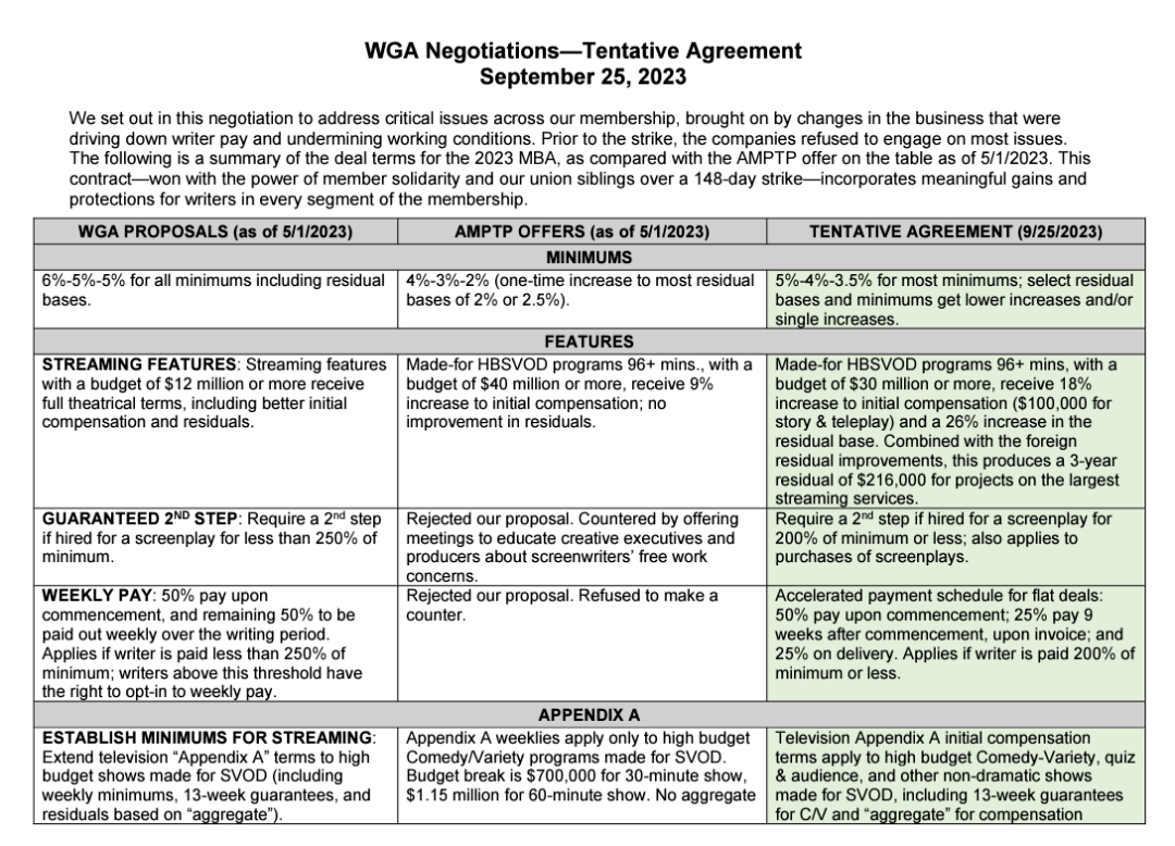 △ WGA与代表电影公司进行谈判的AMPTP达成的”临时协议“