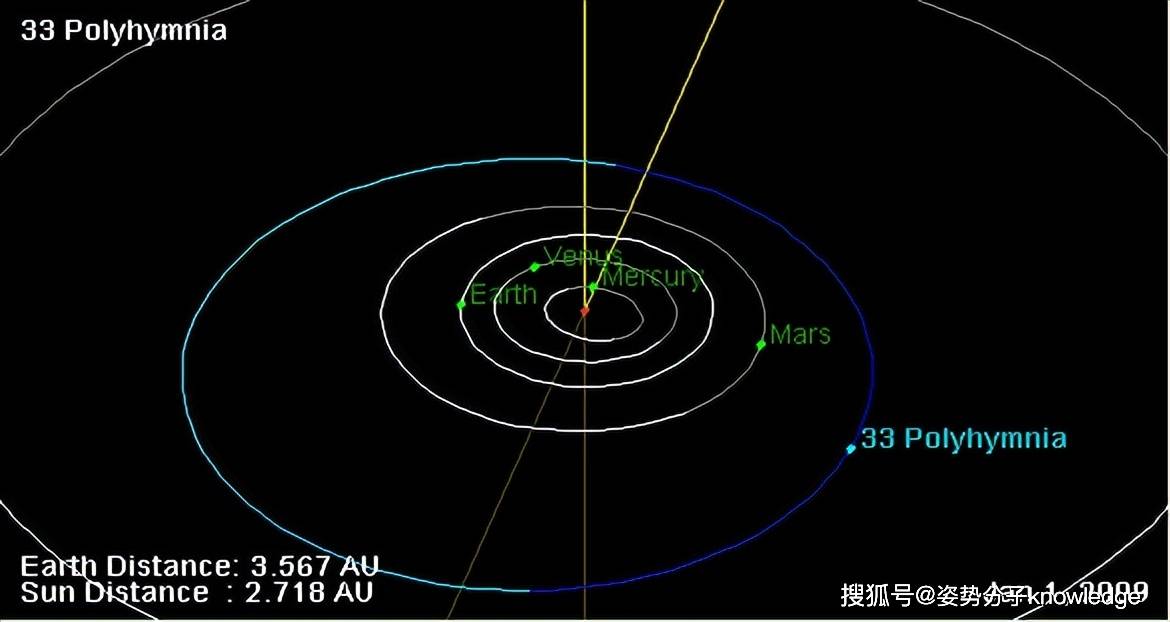 33 Polyhymnia中文译作司瑟星,发现于1854年,是人类历史上发现的第33颗小行星。它位于太阳系小行星主带内,也就是火星和木星之间,公转周期1771个地球日。