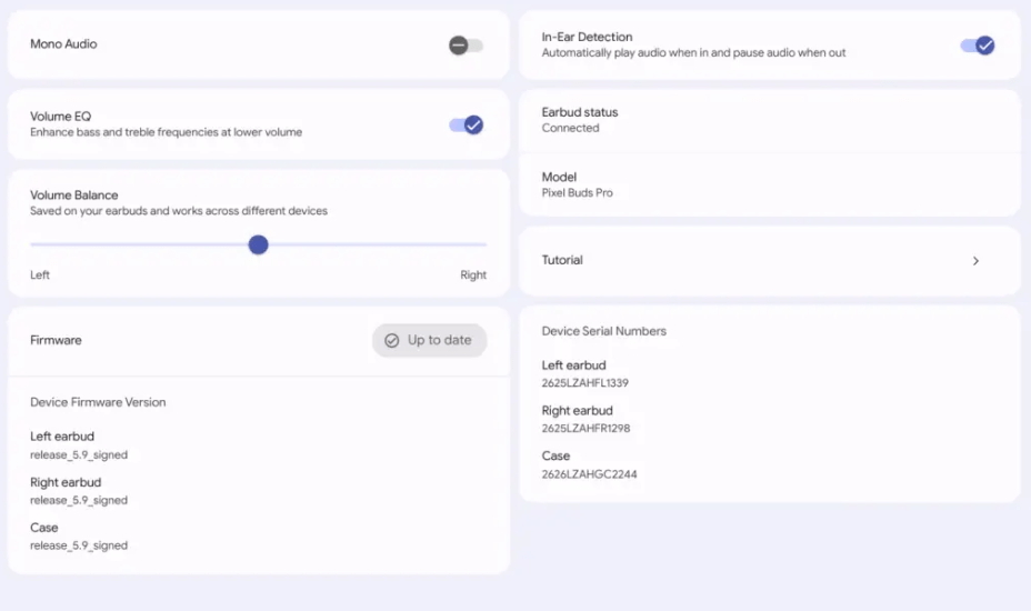 IT之家注意到,Pixel Buds PWA 暂未支持耳机密封检查、音频开关控制和空间音频等功能,用户可以单独使用 Pixel Buds PWA 来配对和设置耳机,无需手机。