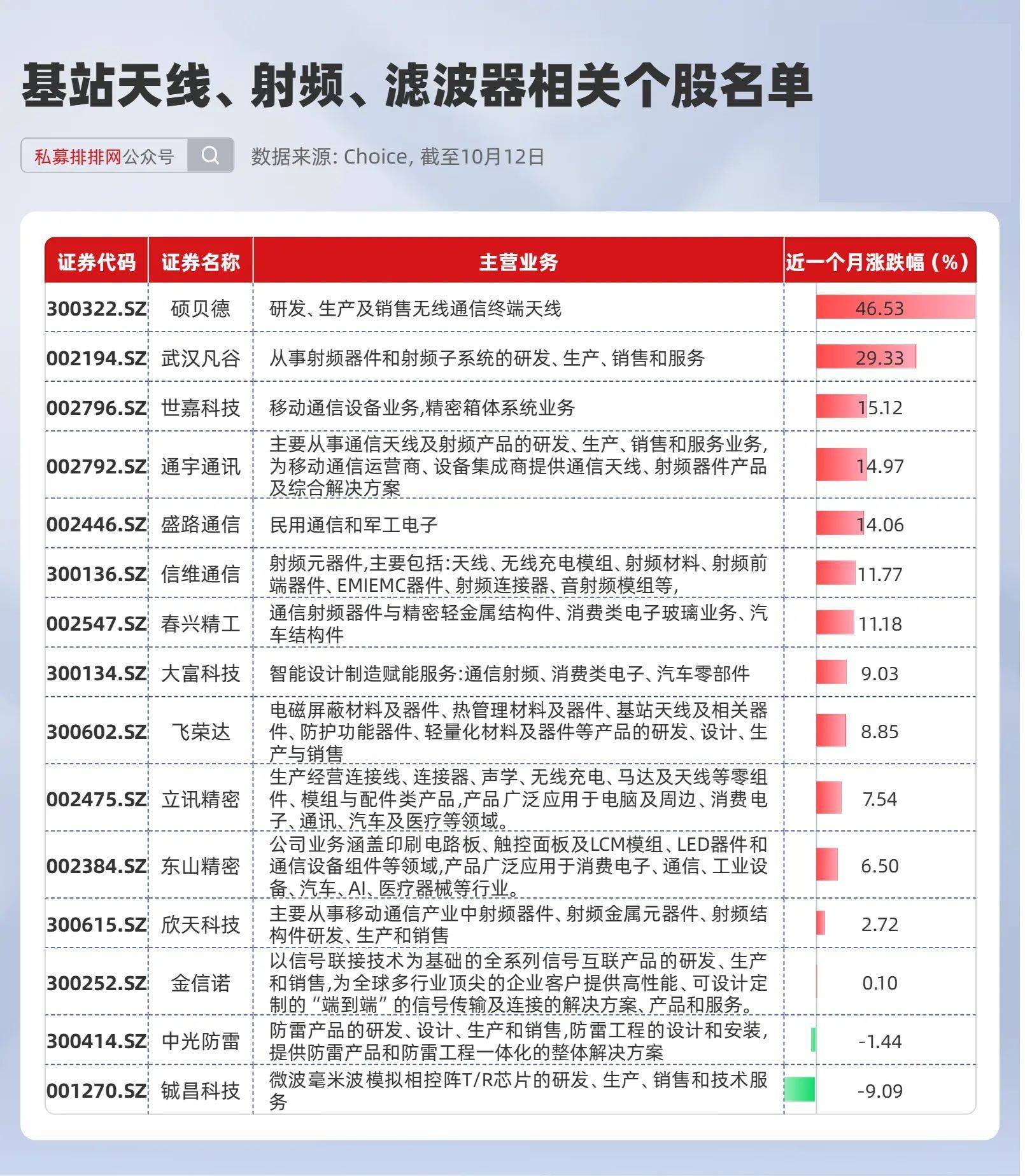 由此可见,天线、射频、滤波器成为5.5G中需求增长较为明显的硬件,以下是笔者根据研报和公司公告整理的基站天线、射频、滤波器的相关个股,供读者参考: