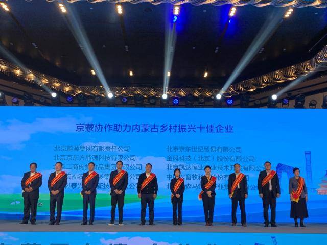 京蒙产业合作大会旨在加强北京与内蒙古两地同频共振、深化产业合作,北京市投入大量人力物力财力,对内蒙古提供全方位援助和支持。设置“京蒙协作助力内蒙古乡村振兴十佳企业”是为表彰在形成优势互补、共赴振兴之约中表现突出的企业。依托扎实的基础设施、高效的数智化供应链等优势,京东帮助提高农民收入、促进农业发展,摘得“十佳企业”称号。