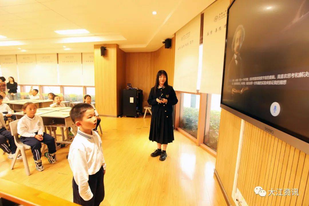 在科大讯飞“大模型”技术的支持下,图灵、爱因斯坦、诸葛亮、李白等AI人工智能形象和孩子们互动交流,回答孩子们脑洞大开提出的各种问题。整堂课氛围活跃,学生参与度极高。