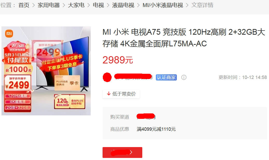 第一款是小米电视A75竞技版,屏幕支持120Hz竞技模式,玩游戏十分不错。75英寸大屏搭配3840x2160分辨率十分清晰,追剧和观影都是一把好手。至于价格嘛,最低2989元贵不贵?