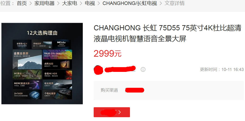 如果前面两部电视都看不上,还可以试试长虹75D55,它采用了点阵光控技术,屏幕还支持DC调光,并且内置2个12W高功率音箱,能够实现比较好的杜比环绕声效果,不过价格略贵一丢丢,最低也要2999元。