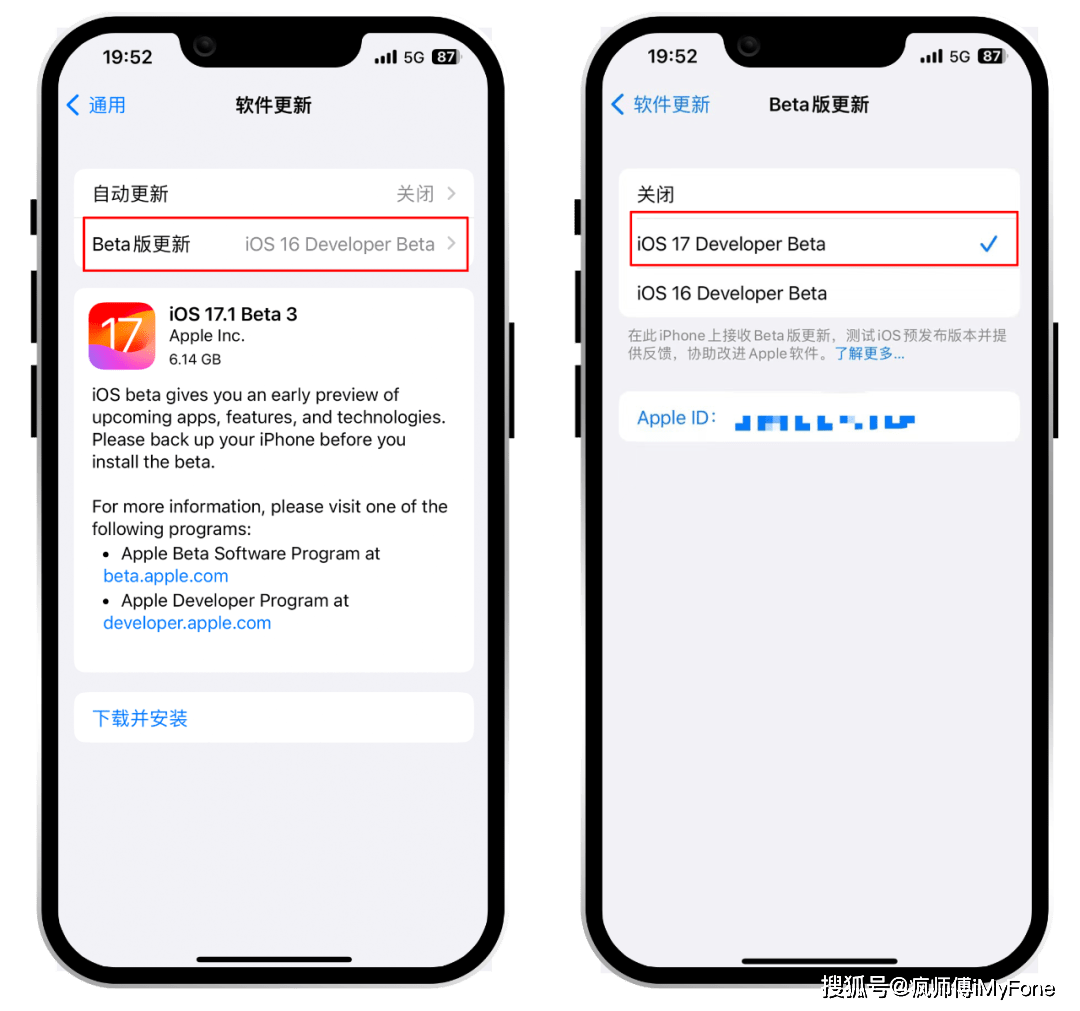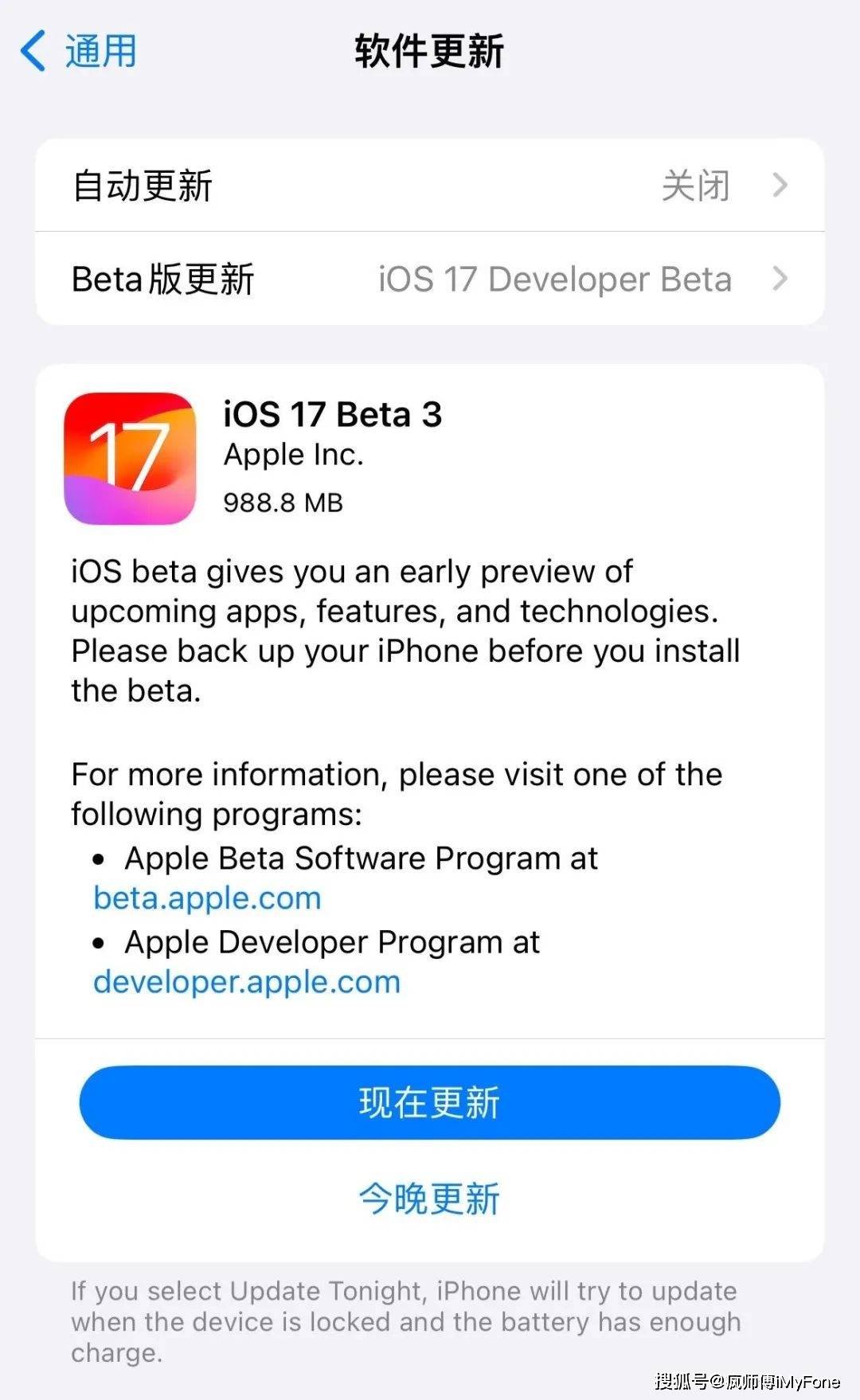 最后打开iOS系统设置--通用--软件更新--Beta版更新--切换为iOS 17,就可以升级为iOS 17测试版了。