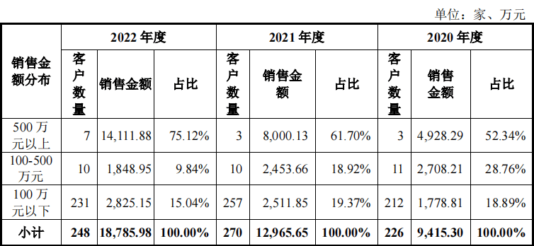 另一方面,润本对线下渠道也同样重视。公司线下渠道主要客户为非平台经销商,近年来,润本股份不断优化线下非平台经销商客户结构,2020年至2022年,公司非平台经销商客户数量分别为226家、270家和248家,其中500万元以上的线下非平台经销商数量分别为3家、3家、7家,销售收入占比分别为52%、62%、75%,公司头部客户收入占比提升明显。