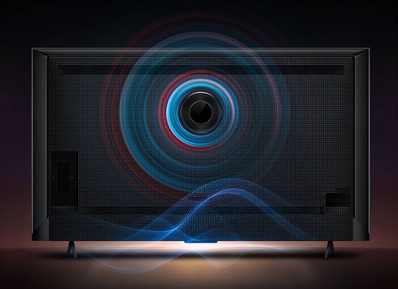 音响上带有低音炮,实现2.1声道体验,2X15W,加上20W低音炮,总计50W。采用MT9653旗舰机芯,4GB内存,64GB存储,Wi-Fi 6,总功率265W。