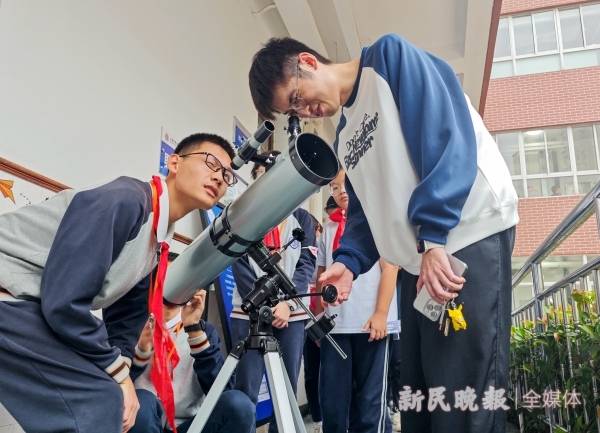 图说:学生们在体验天文望远镜 新民晚报记者 陶磊 摄(下同)