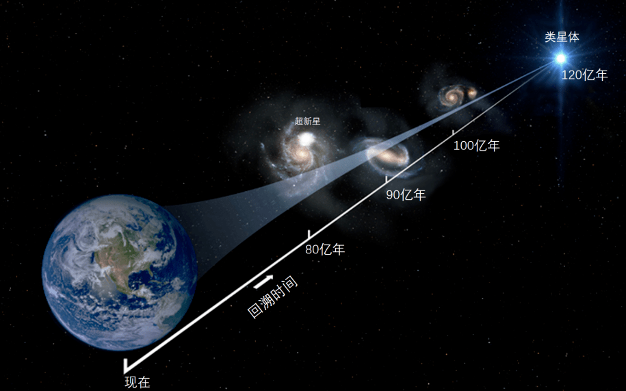 也就是说,我们在地球上观测到的这些天体的光,是百亿年前早期宇宙时期所发出的。这样遥远的天体,为我们追溯宇宙的过去、研究宇宙历史演化提供了可能。