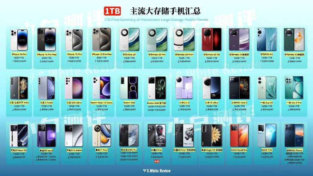 今年初到年中这段时间,不少新机推出了1TB大存储版本,部分手机还推出了24GB+1TB大内存大存储版本,印象里卢伟冰好像还在发布会说过供应链价格下来了, 所以白菜价(原话不记得怎么说了),但最新消息显示由于上游内存和储存的物料价格上涨,将影响Q4的手机等终端产品,这也意味着后面可能很少再看到好价格的大内存大存储版本了,今天我们整理了机圈的1TB手机,如果你有大存储需求可以看看~