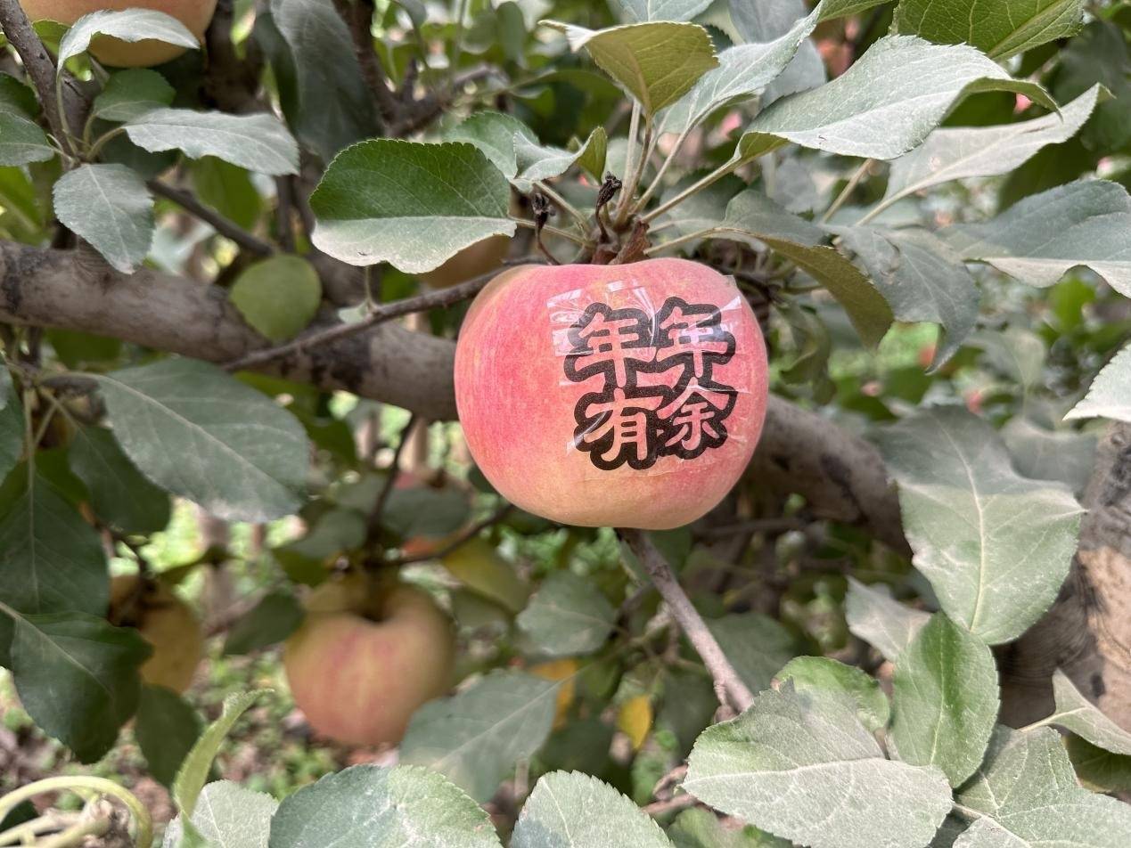 红彤彤的苹果上印有“年年有余”(央广网发 李扬 摄)