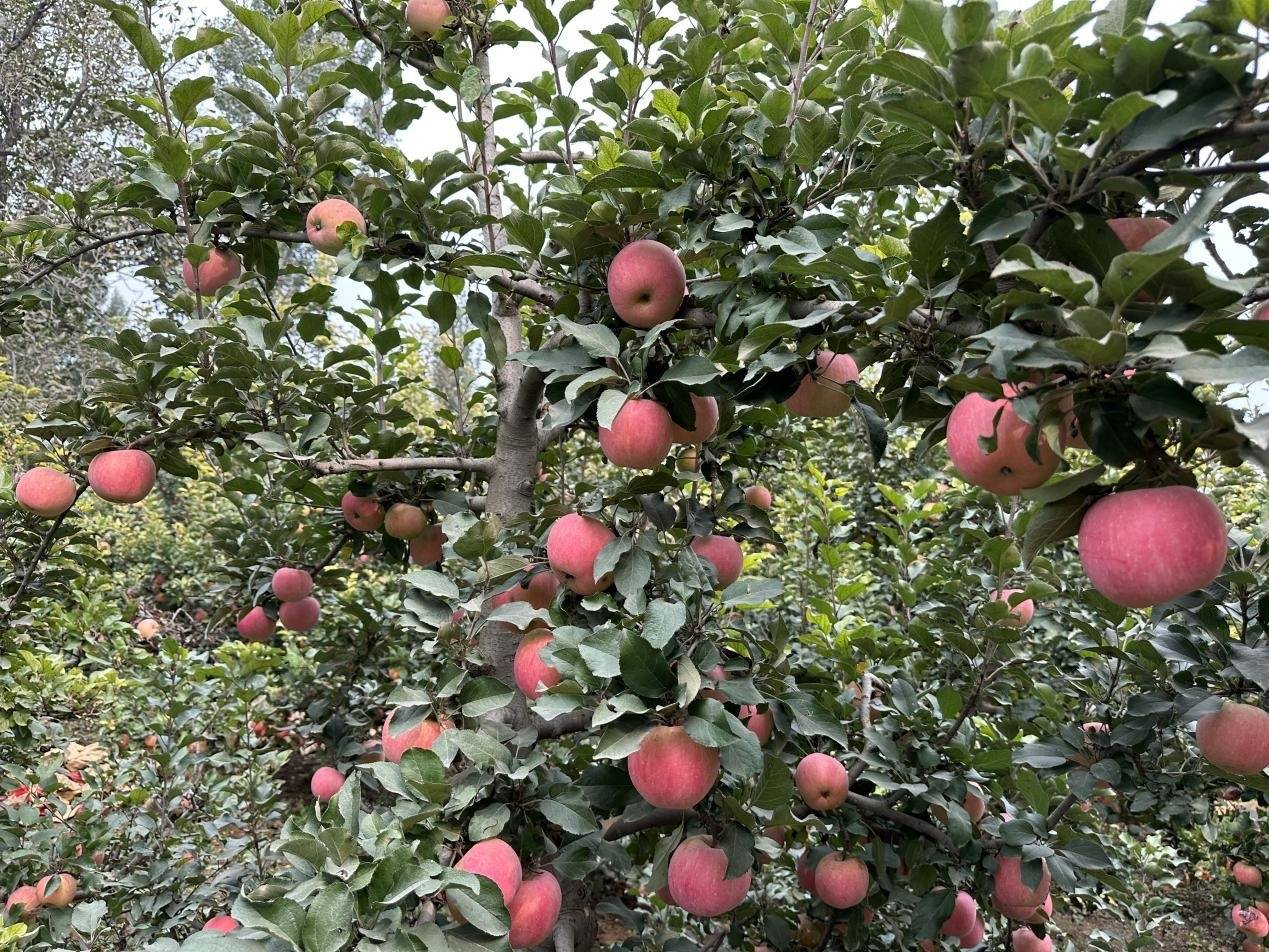 “今年又是一个丰收年,树上的苹果硕大诱人、果实饱满。多年来我们坚持绿色有机种植,全程施用附近村子里的农家肥,套袋不使用农药,全程培植了色泽度好、口感细嫩清脆、品质汁甜肉细的苹果。目前苹果进入了采收期,每天前来体验采摘购买的游客挺多,通过打电话预订的经销商也不少,销路有保障,收益十分可观。”果农张金安说道。