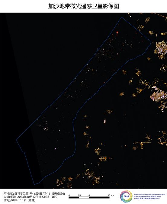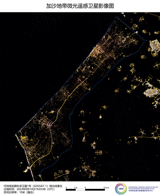 公开资料显示,加沙地带是一块长41公里,宽6到12公里的狭长地带,在总计约365平方公里的土地上,生活着200多万人口,绝大部分为巴勒斯坦人。这里是全世界人口最稠密的地区之一,人口密度和西班牙马德里和英国伦敦相当。利用SDG中心可持续发展科学卫星1号的微光成像仪,在当地时间9月14日晚10时左右拍摄的加沙地带夜景图像显示,在此轮巴以冲突之前,整个加沙地带的夜晚灯火通明,这也直观反映了该地区的人口稠密程度。