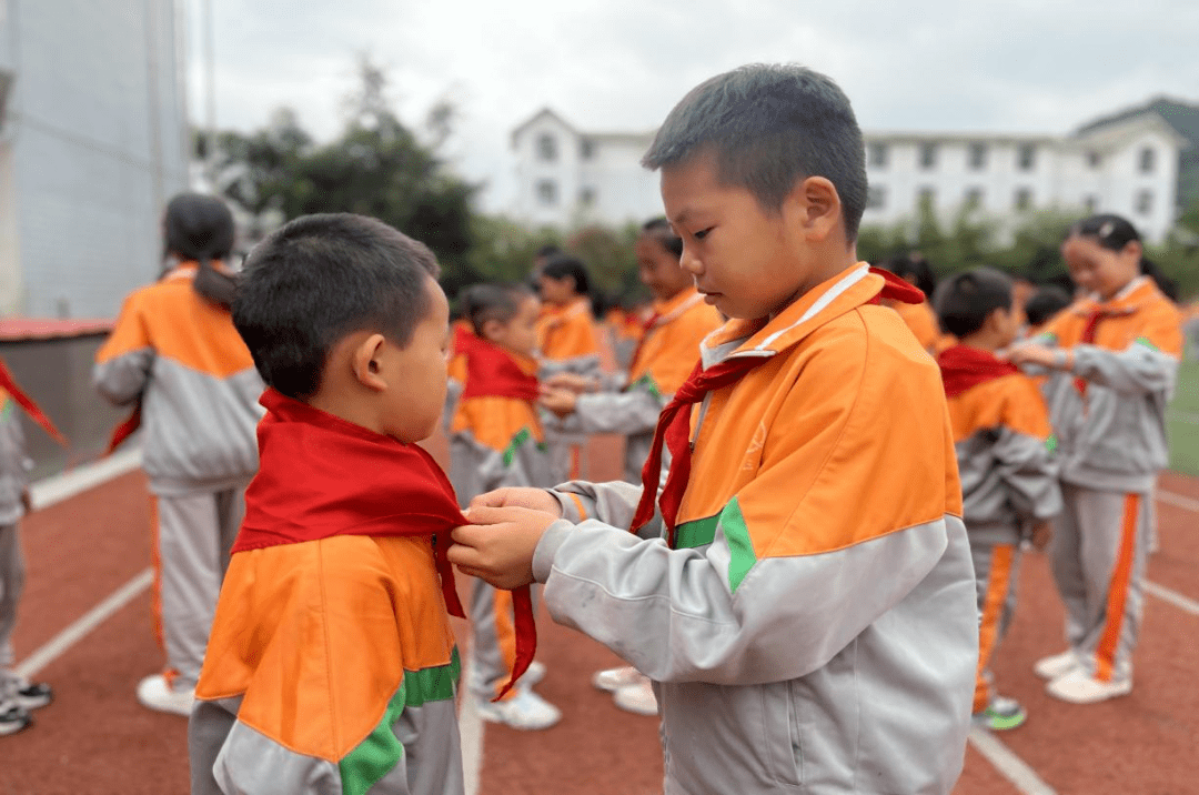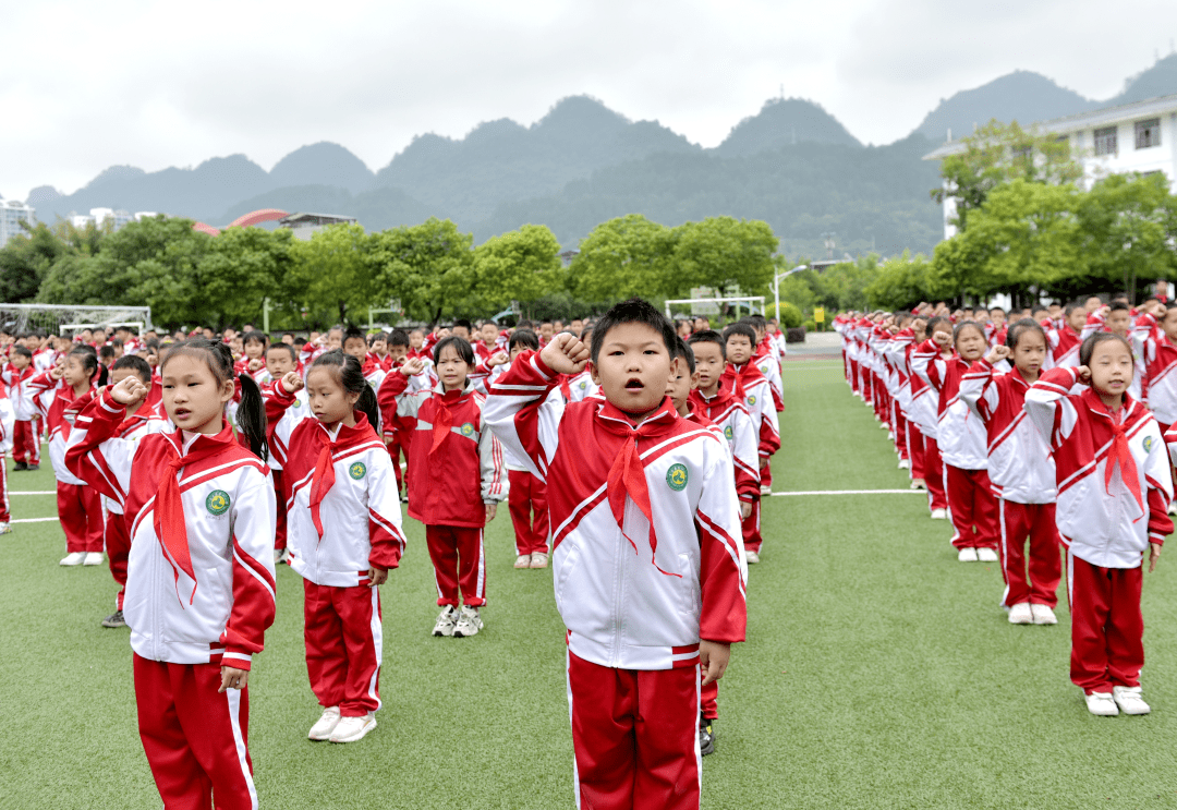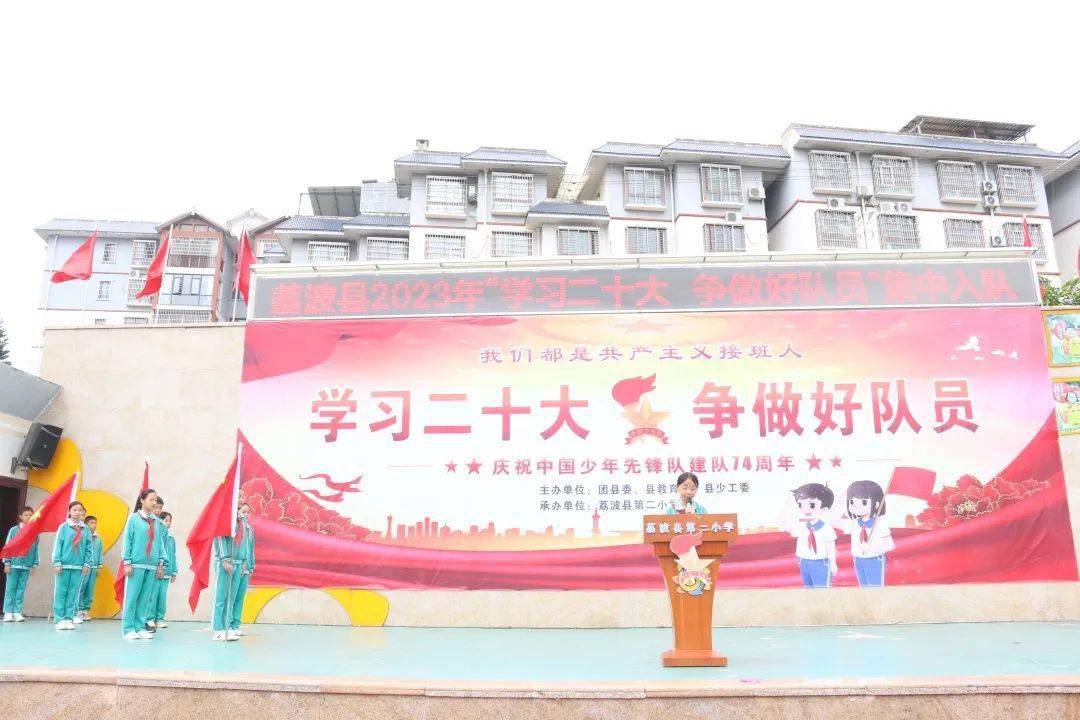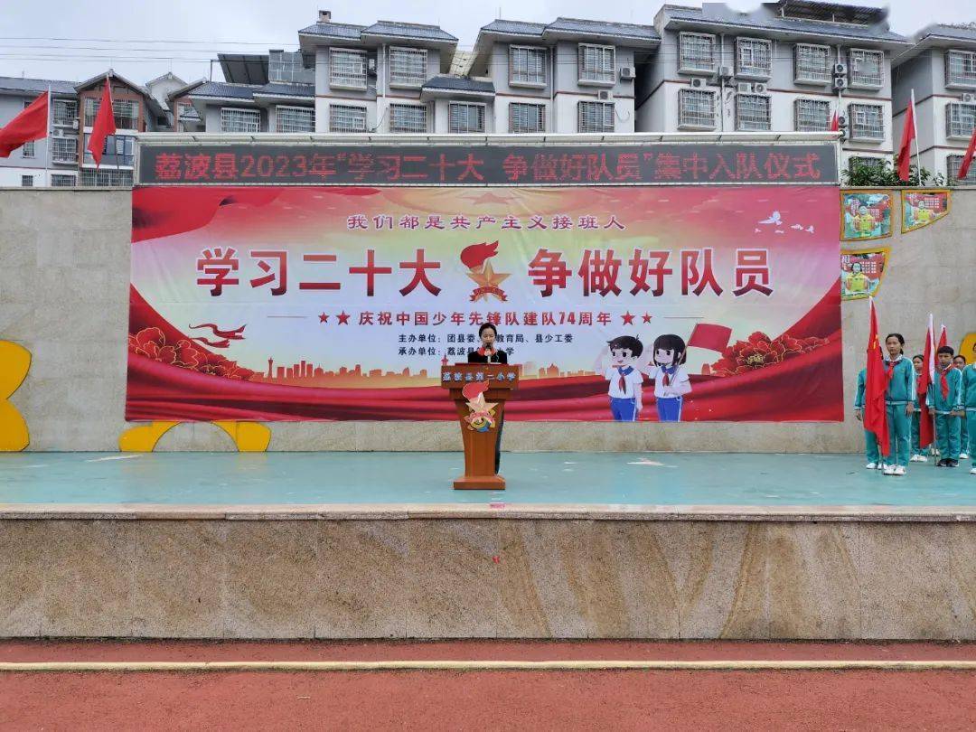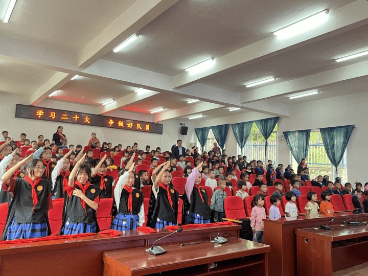 为深入学习贯彻落实习近平总书记关于少年儿童和少先队工作的重要指示精神,贯彻落实团中央、教育部、全国少工委印发的《关于构建阶梯式成长激励体系增强少先队员光荣感的指导意见》,大力弘扬爱国主义教育,提升学生民族自豪感。增强队员们的爱国主义教育意识,进一步强化广大少先队员的光荣感、使命感、责任感,10月13日上午,荔波县第二小学举行了2023年秋季学期第二批少先队员入队仪式。团县委副书记石小青向新队员们表示祝贺,并殷切地希望小队员们要爱护红领巾;严格要求自己,学先锋,做先锋。发挥少先队员的先锋模范作用;热爱祖国、锤炼本领、强健体魄,为红领巾争光添彩!